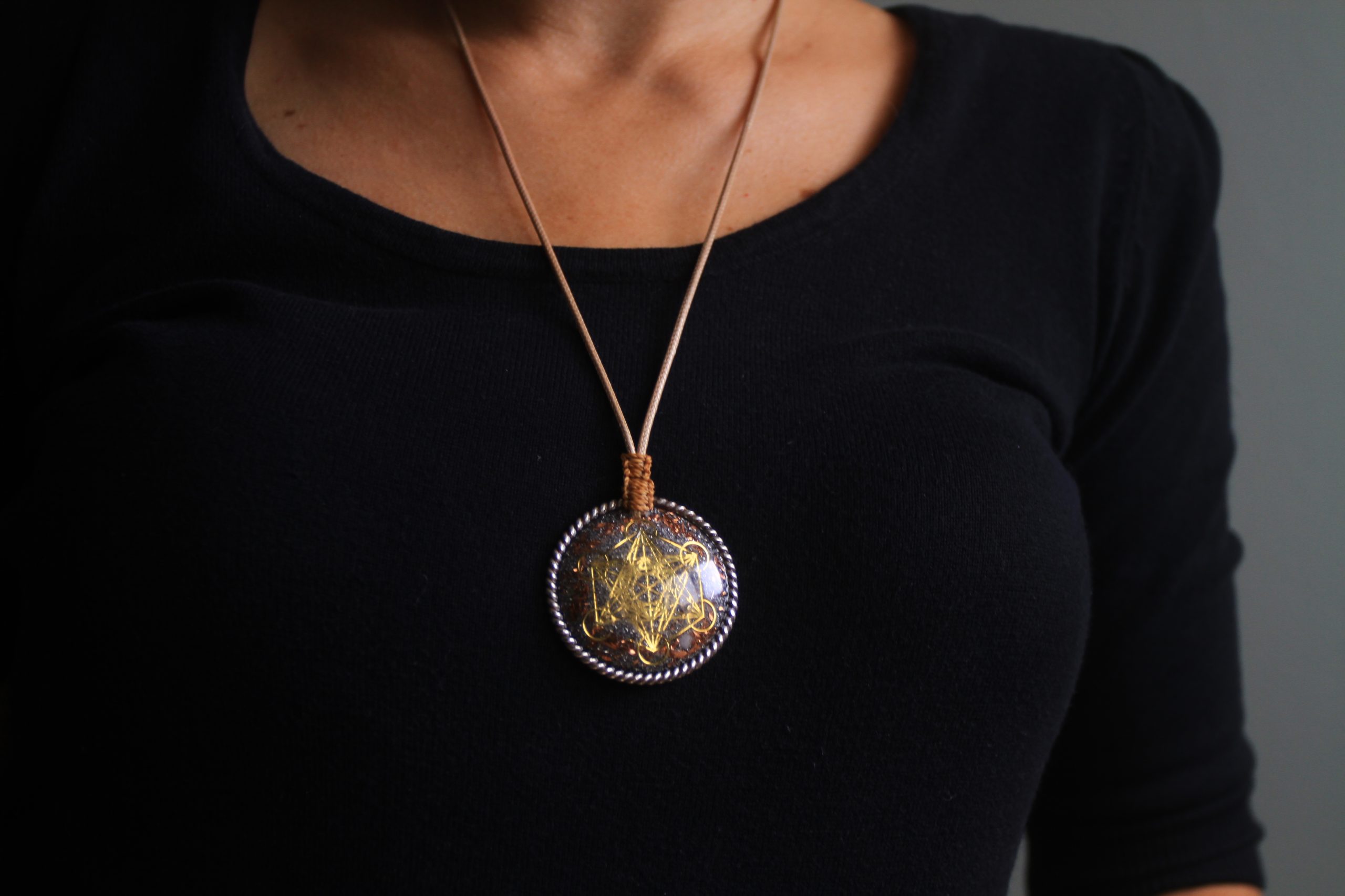 Orgonite – Metatron cube pendant (with lost cubit Pure Silver Sterling tensor ring)
